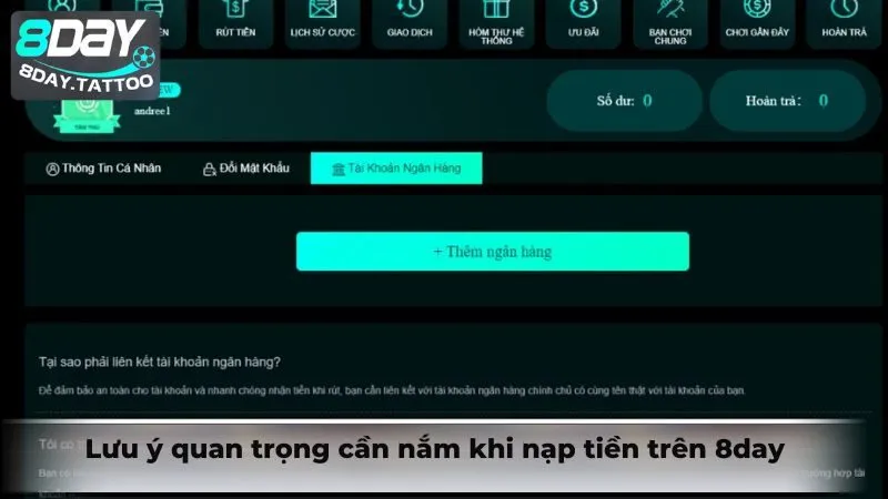 Lưu ý khi nạp tiền trên nhà cái 8day
