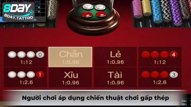 Chiến thuật này được nhiều người chơi đánh xóc đĩa 8day áp dụng. Sau mỗi ván thua, bạn sẽ tăng gấp đôi tiền cược ở ván cược kế tiếp cho đến khi chiến thắng thì dừng lại. Hãy thực hiện liên tiếp từ 3 đến 5 ván, nếu vẫn không hiệu quả thì có thể linh hoạt đổi sang chiến thuật khác.